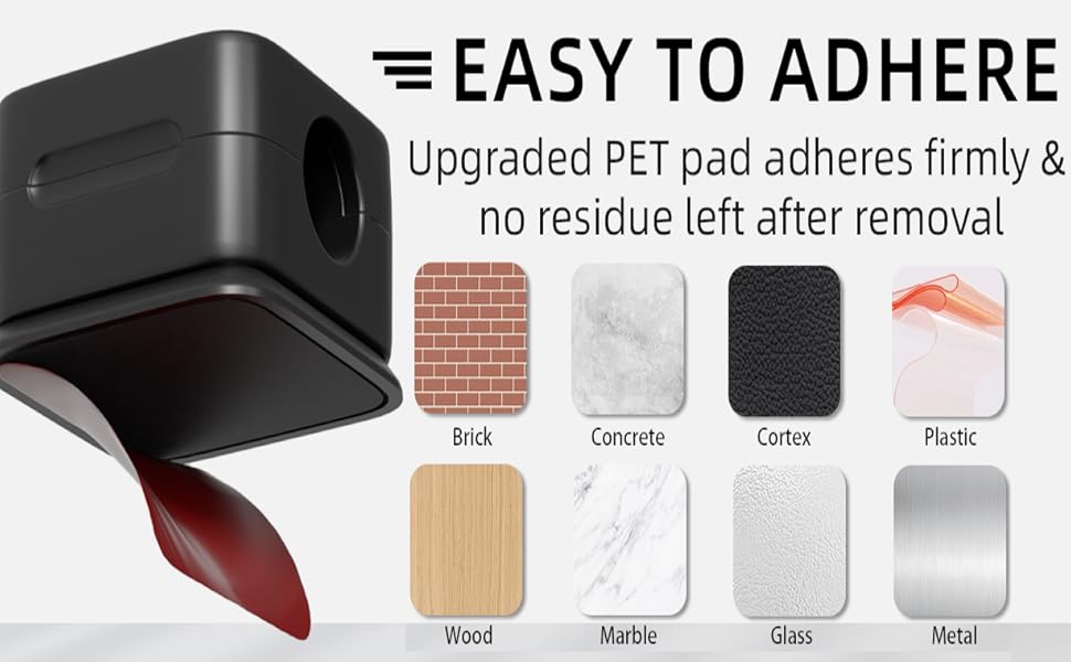 ✓ Super Strong Stick: Special PET adhesive pad sticks to any clean, smooth surface (wood, glass, metal, plastic) without leaving marks